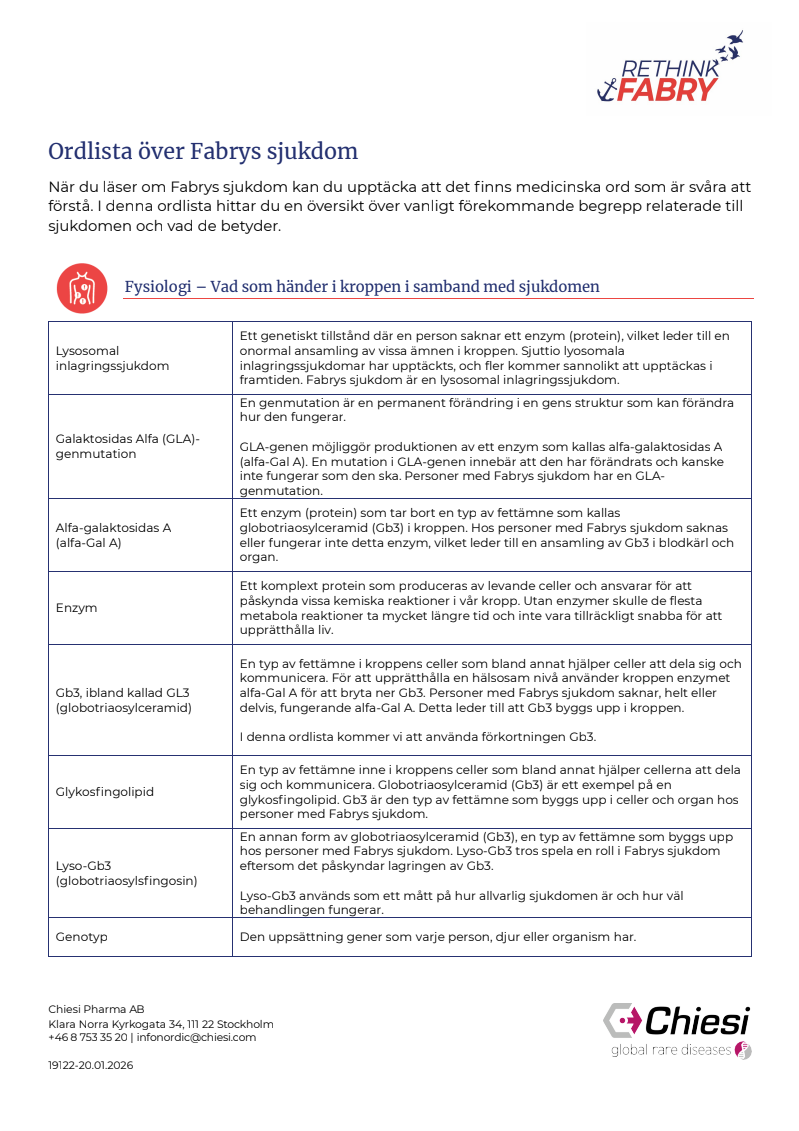 På denna sida har vi samlat verktyg för dig med Fabrys sjukdom och svar på vanliga frågor som personer med Fabry ofta undrar över.